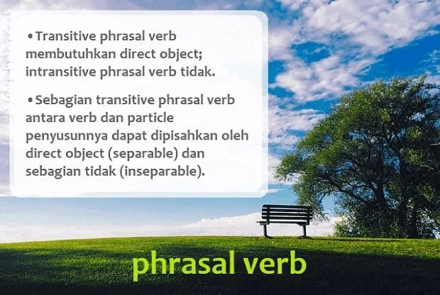Salah satu cara agar bisa menghafal banyak kosakata dalam bahasa inggris adalah dengan memahami phrasal verb tersebut. Kelihatan sekali kan, got (past verb dari get) . Phrasal verb bahasa inggris ini perlu kamu ketahui artinya | joesin. Go, make, take) dan satu atau dua particle. Kata kerja ini bermakna idiom, .